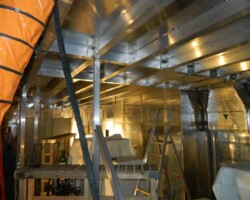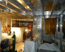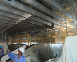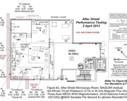 Vitatech designed and managed the electron microscope shielding installation of a six-sided 485 sq. m (5,218 sq. ft.) AC ELF magnetic shield within the entire microscopy suite. After the electron microscope shield installation was completed all recorded wideband AC ELF magnetic field levels measured less than 30 nT (0.1 mG) p-p averaging 10 nT (0.1 mG) p-p in most tool areas except near the unshielded marble floor where loop around emissions exceeded 30 nT (0.3 mG) p-p. Vitatech also recommended moving the EM support equipment and power supplies away from the tools to further reduce EMI emissions at the columns. The shielding factor (SF) which denotes shielding attenuation achieved by the AC ELF magnetic shield ranged from -25 dB to -38 dB, meeting all the SEM/TEM EMI performance criteria.